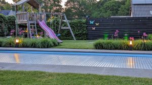 De paaltjes worden geleverd inclusief grondpin en bouten zodat we ze zowel op steen als zand konden monteren. Aansluiten van het systeem is heel makkelijk omdat de stekkers simpelweg vastgedraaid hoeven te worden. Een groot verschil met ons vorige 220 volt systeem! Het enige nadeel is dat soms de lengtes van de verlengkabels niet goed uitkwamen waardoor je het teveel aan kabel weg moet werken.