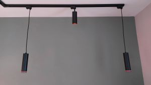 De lampjes zijn toegepast in een rails met 6 GU10 armaturen. De kleur en lichtintensiteit instelling maakt de ruimte helemaal af.